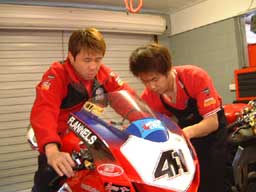 チーフメカが居ない今回のレース・・・皆、担当任務以上に動き回り最高の結果をゲット出来るよう、必死になって頑張っています。日本からの声援、応援団長の南城君と一緒に応援宜しくお願いします。」