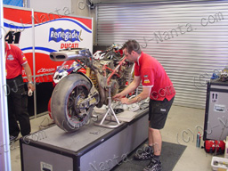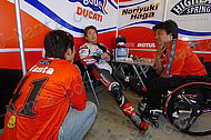 なんと、スーパーポールを走り終わった後、ファンサービスをしようと走り続けていた紀ちゃんが、ハイサイドで転倒していたのだ!!マシンは大破。紀ちゃんも背中と手を打ち付ける怪我を。。。どうなるの?明日の決勝・・・。