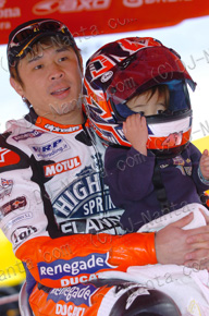 Vallencia GP(2ヒート目)優勝時のシャンパンファイト。