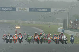 勿論勝負であるから、ギャンブル的な要素を多分に含んでいた。我々はスリックタイヤに少量の溝を彫っただけの、カットスリックという、乾いている状況に一番近い雨天用のタイヤを選択し、交換してレースに臨んだ。現時点では路面は濡れていたが、レースが進行するにつれ乾いてくるであろうから、レース前半を我慢し、後半にスパートをかけようという戦略であった。